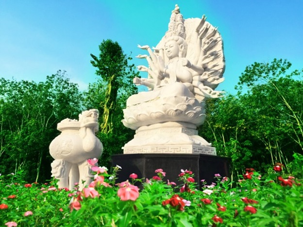 Hoa viên nghĩa trang Bình Dương kết hợp hài hòa các công trình mỹ thuật tâm linh với cảnh quang thiên nhiên, chính là dạng thức tâm nguyện “sự vĩnh hằng” của đạo lý ngũ nhân trong đời sống con người Việt Nam (nhân – lễ - nghĩa – trí – tín).